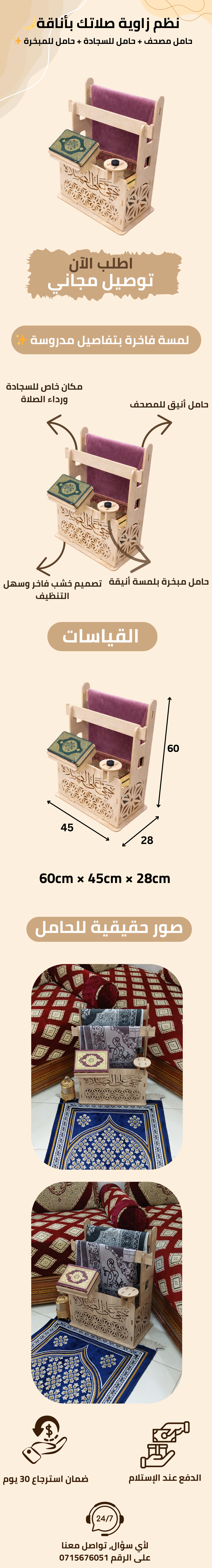 منظّم ركن الصلاة 3×1: حامل سجاد + حامل مصحف + حامل مبخرة